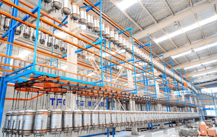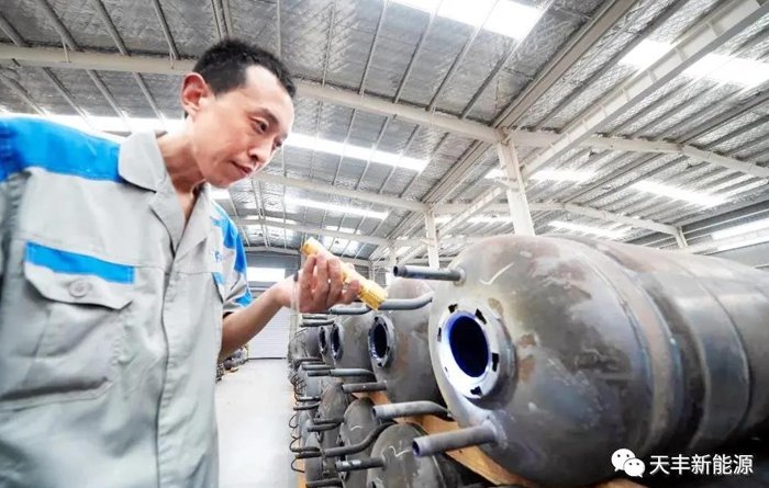 In the enamel production line, Tianfeng maintains a leading position in terms of process and technology application. The company is equipped with 360 ° automatic enameling machine. According to the wet enameling process, the enameling material can be uniformly applied to the inner wall of the pressure water tank quickly and efficiently, and efficient adhesion can be achieved.